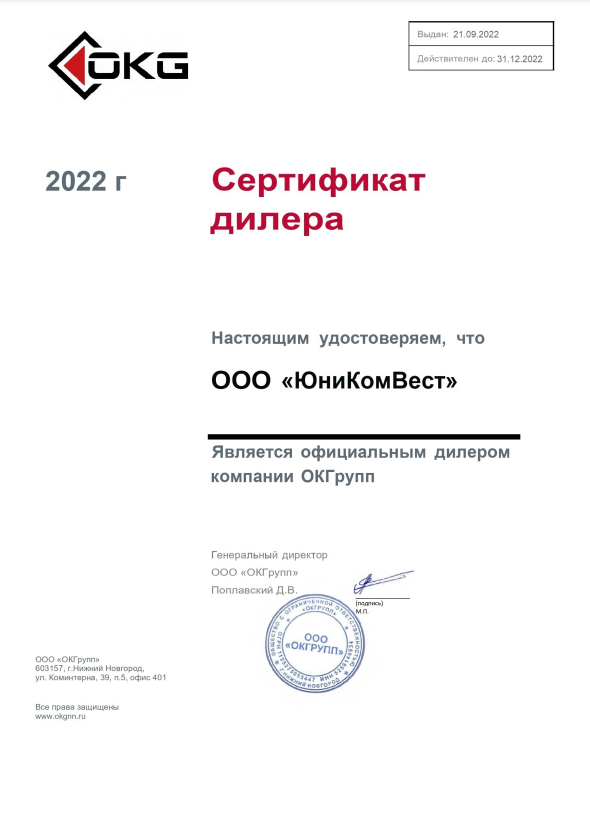 Все продукты производства ОКГрупп сертифицированы и запатентованы.