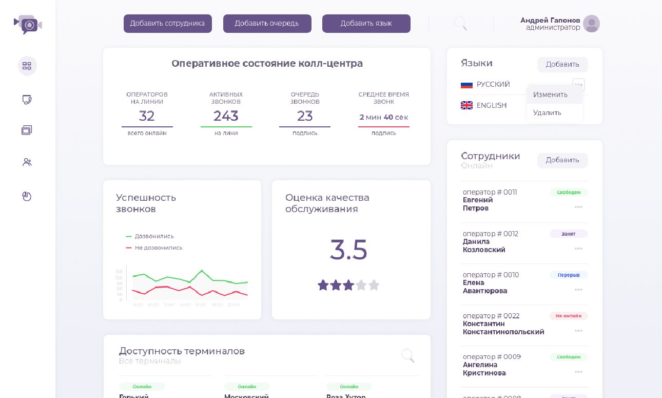 — Отдельные настройки для операторов, знающих язык жестов и несколько языков